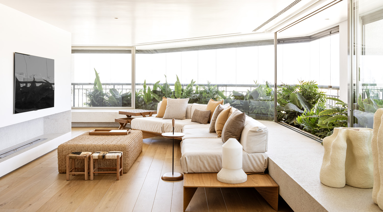 No apartamento MAT é o lar de um casal e seus três filhos. Possui uma vista exuberante da cidade de São Paulo, e uma varanda larga, que serve também como um ambiente agradável e de lazer, onde as plantas trazem a sensação de lar.