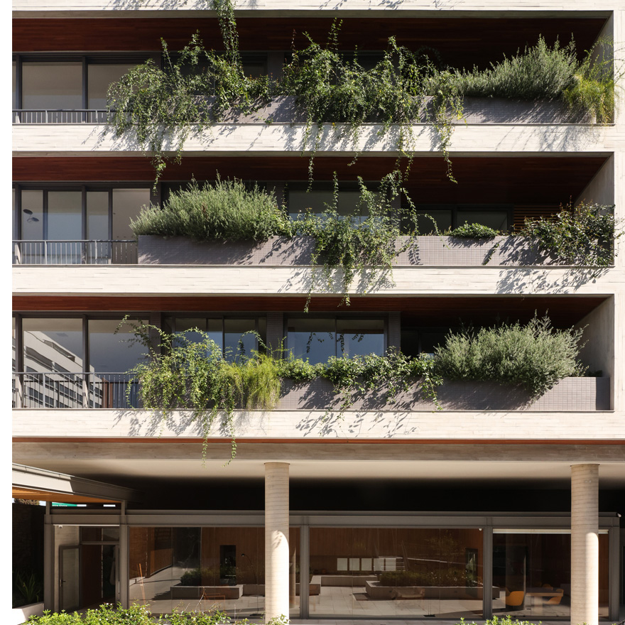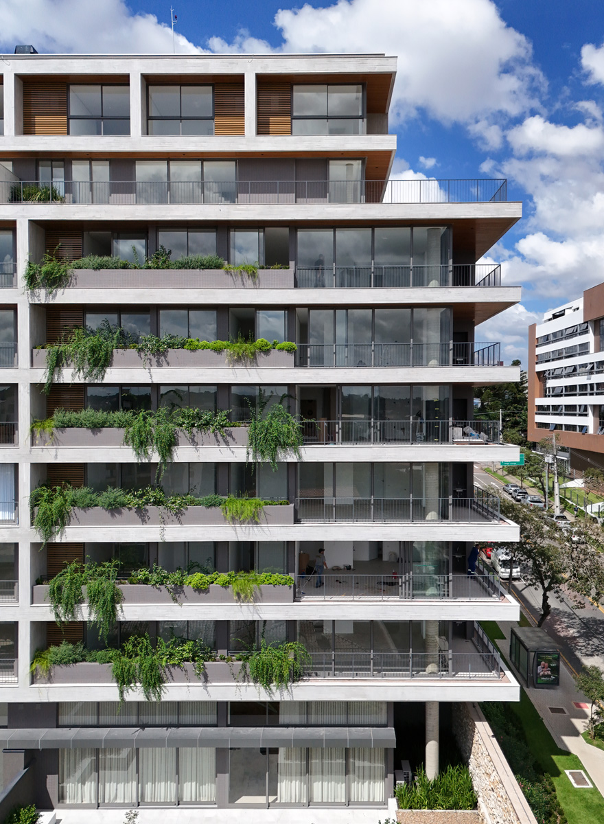 O paisagismo do Edifício Curitiba se desdobra em seus 7 pavimentos e o térreo, onde seu papel no empreendimento é construir um ambiente agradável para os moradores, e complementar a arquitetura através da natureza.